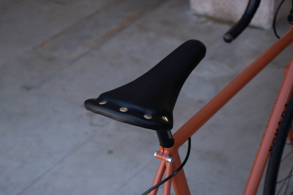O mecânico cá da casa pensou em tudo. Delineou a montagem, escolheu as peças, selecionou os componentes, correu dezenas (talvez centenas) de RALS à procura da cor perfeita, et voilá… uns tempos depois, nasceu esta bicicleta, que homenageia a cor cobre e a simplicidade de uma custom single speed.