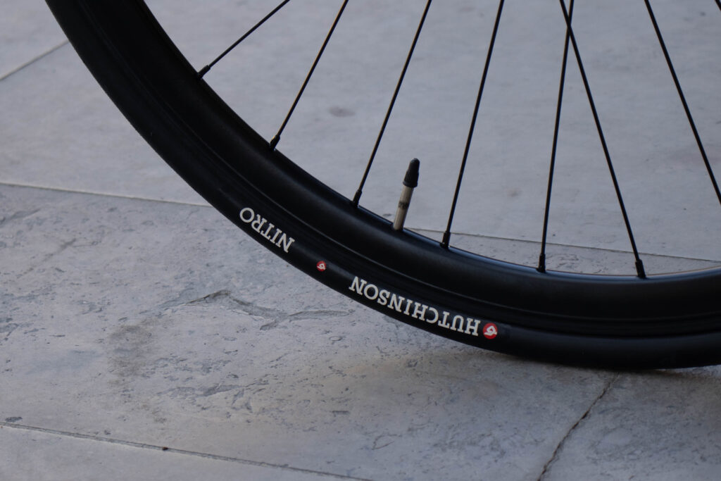 Chegamos às rodas, que pela imagem acima facilmente identificar os pneus – Hutchinson Nitro 700x23c. Fininhos e ágeis, como queres numa bicicleta destas. Estes meninos estão montados nuns aros 700c, de perfil fundo e cubo New Join 36f flip-flop. Fechamos esta menina com o detalhe do espigão de selim, onde encontras um Gusset 25,4mm e um selim Velo Black.